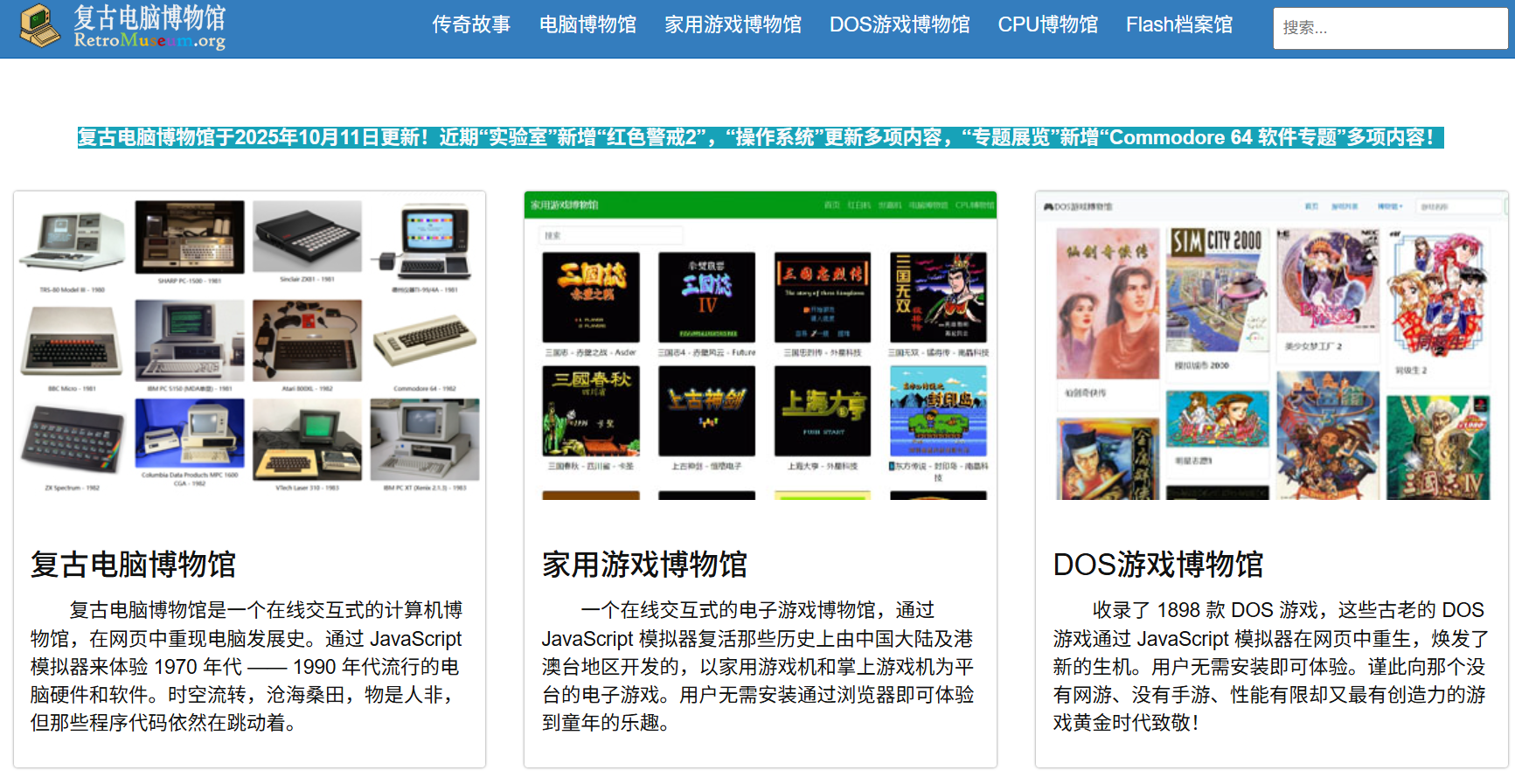 复古电脑博物馆是一个由个人业余维护的、非营利性的、以教育和科普为目标的网站。