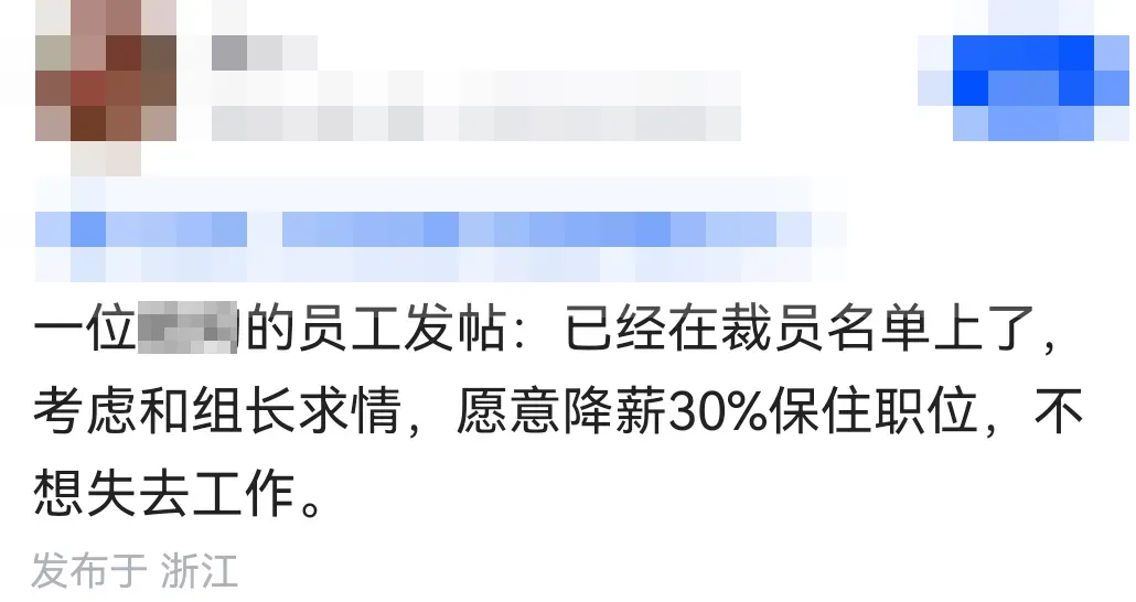 一位大厂员工发帖:已经在裁员名单上了,考虑和组长求情,愿意降薪30%保住职位,不想失去工作。